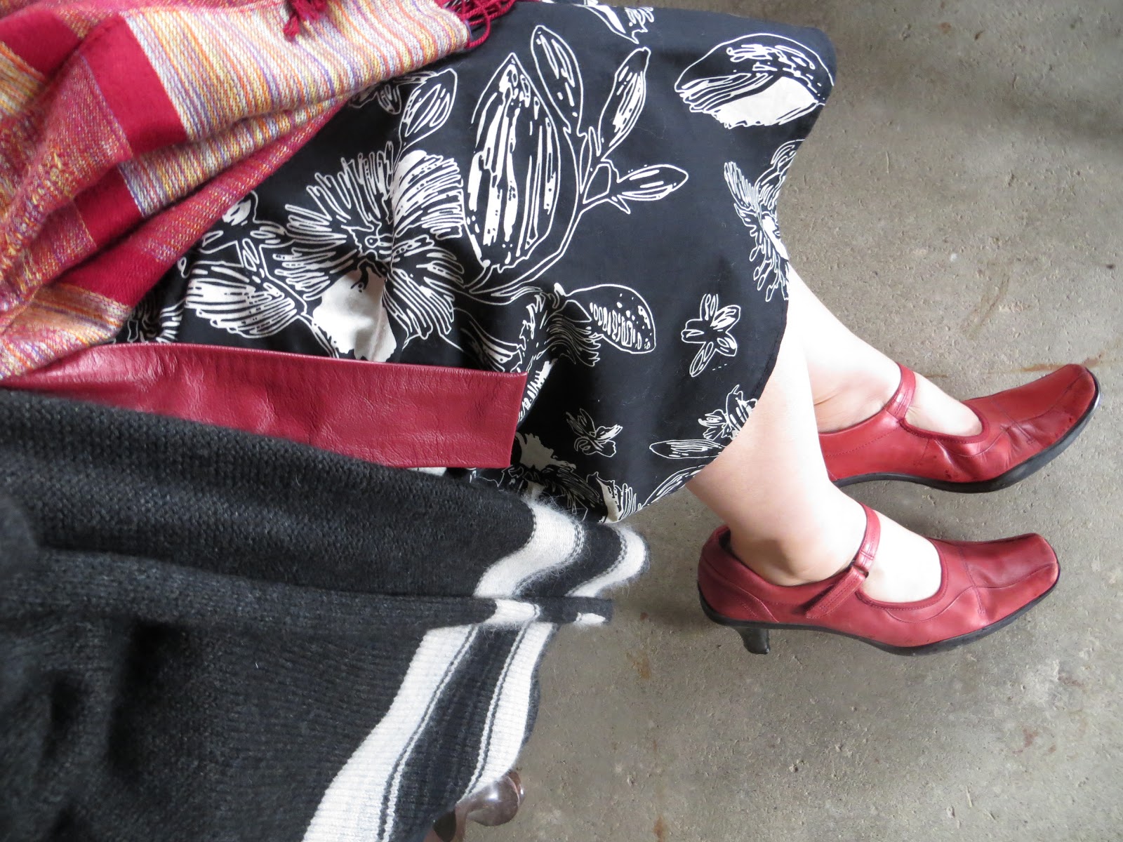 But then there are my shoes, which were my treat to myself when I returned to the job I love after a two-and-a-half year medical leave spent lying on the couch in rotting pyjamas. I had been saving up for these, scored the January sale price, and wore them first on the occasion of returning to perform spoken word in front of an audience after a six-year absence.