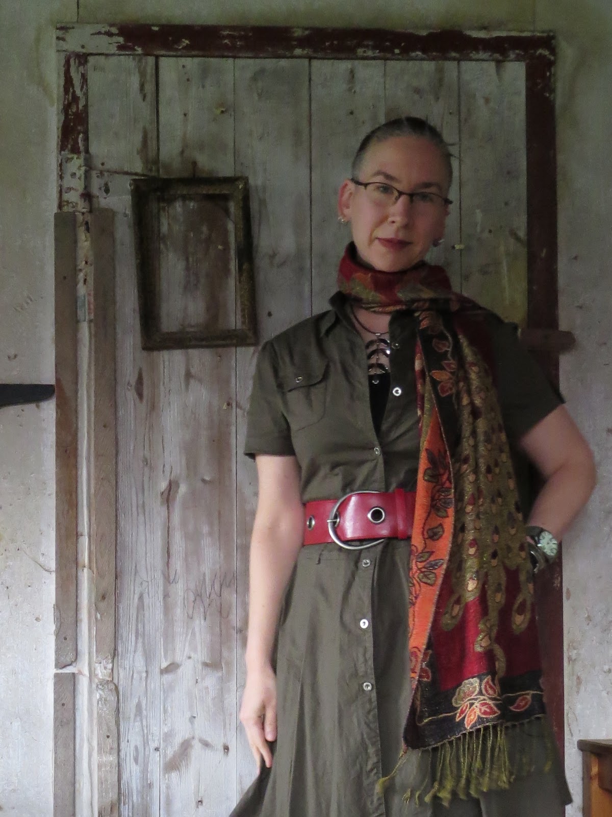 | sweater: Point Zero, local discount / overstock store, $6 necklace: thrifted, worn here skirt: C.O. Design, Winners (2000, when I started at my current job) shoes: Fluevog Mini Dollface, worn here and here |