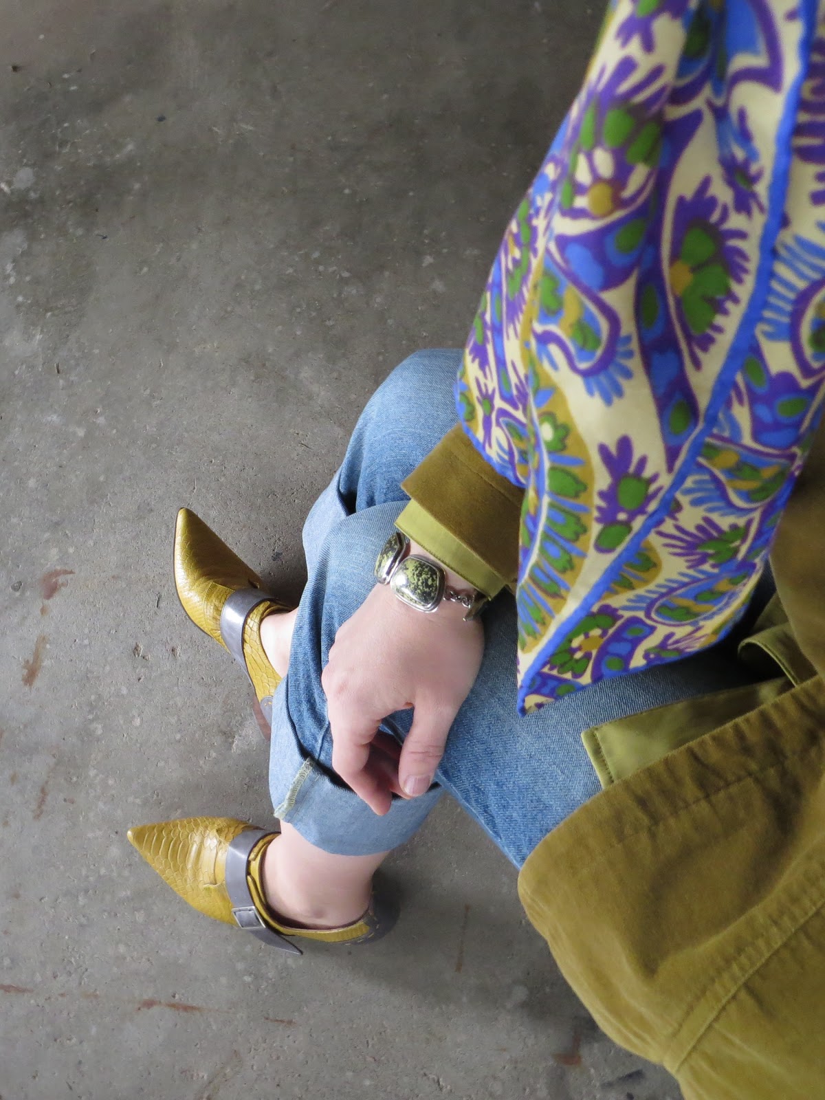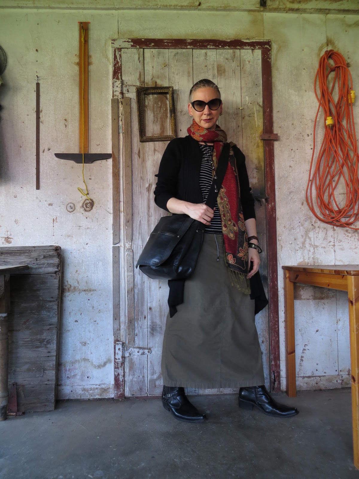 P.S. I just noticed that this outfit does exactly the same thing I admired on Gracey over at Fashion for Giants - black as grounding for brights at both ends - cool!