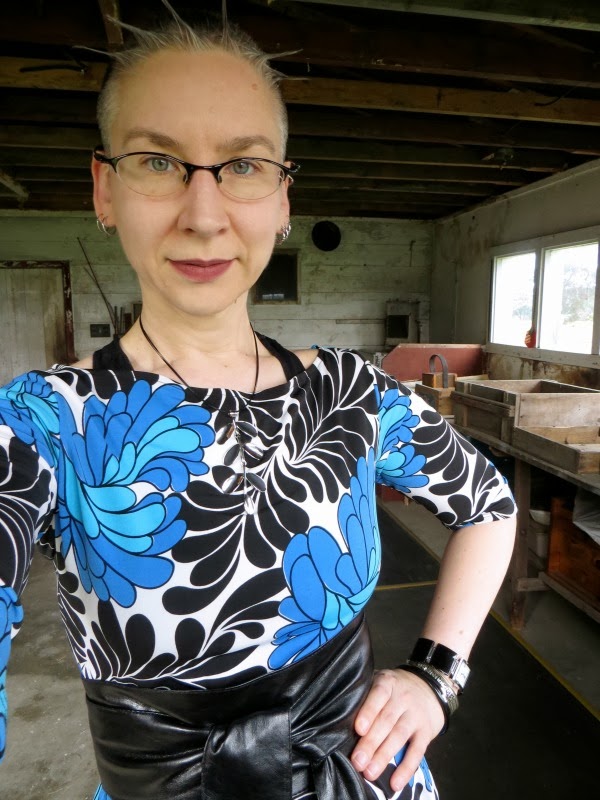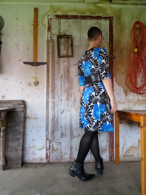 dress: Leota, My Habit wrap belt: thrifted at the The Kitty Cat Store, worn here old shorty cowboy boots: WalM*rt men's section clearance, worn here