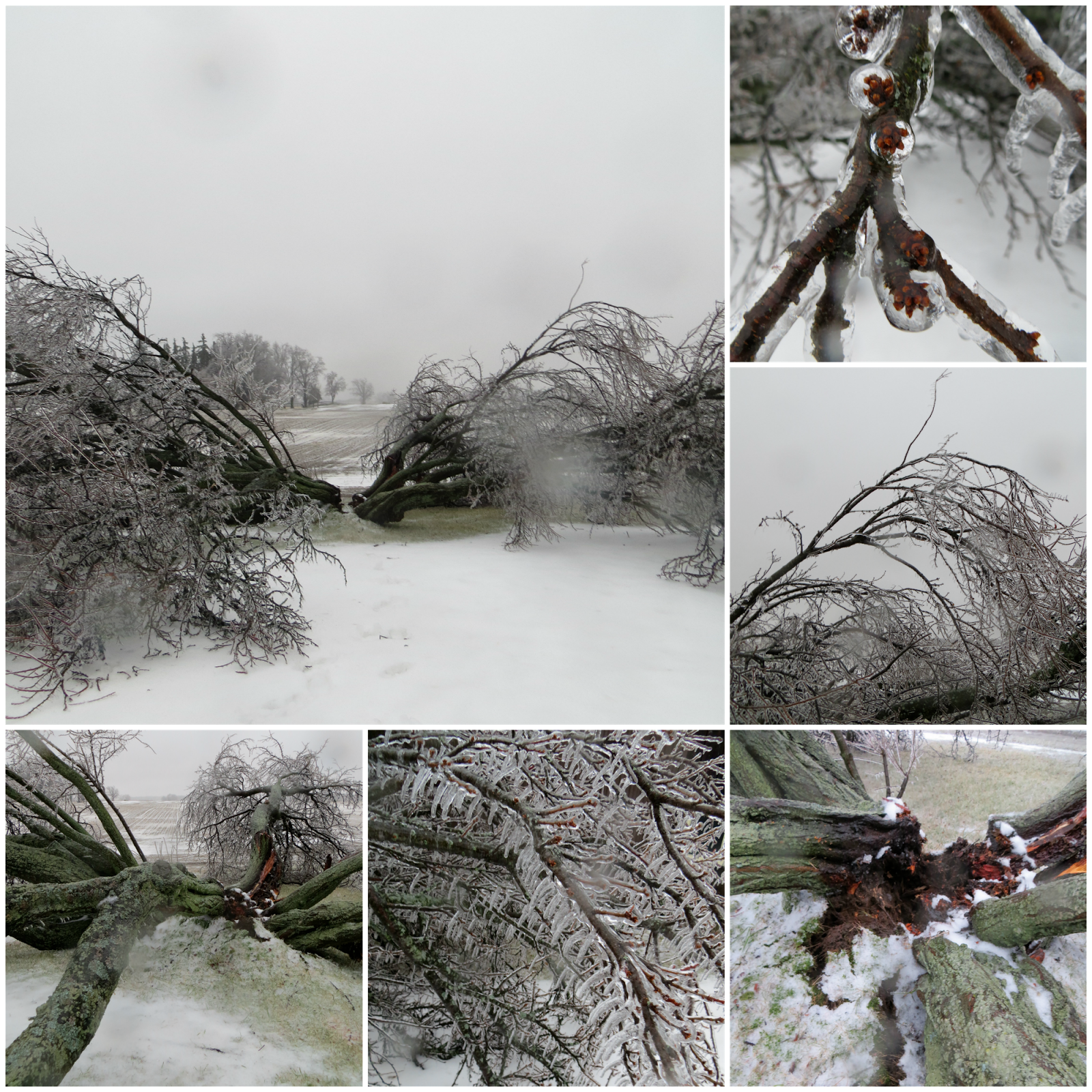 I wish my fellow North Americans safe passage through the storm. I awoke to a goodbye this morning: our beloved ancient plum tree, featured as it burst into glorious bloom in my own Travelling Yellow Skirt Freak Show post, collapsed under the weight of the ice.